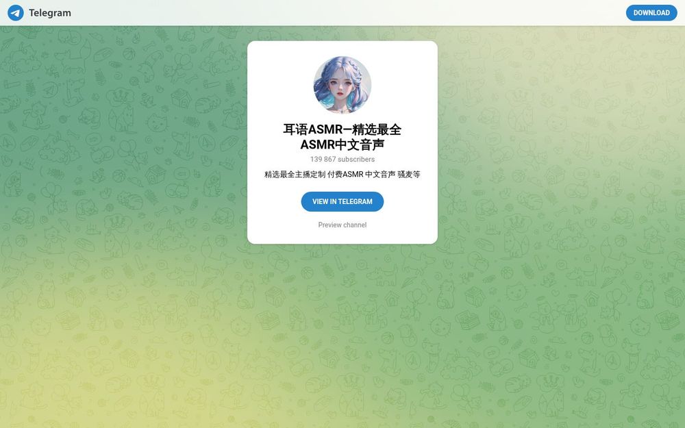 通过以上信息,你可以更清晰地了解耳语ASMR 的定位与特色,并决定是否通过 Telegram 加入与订阅以获取中文ASMR音声。