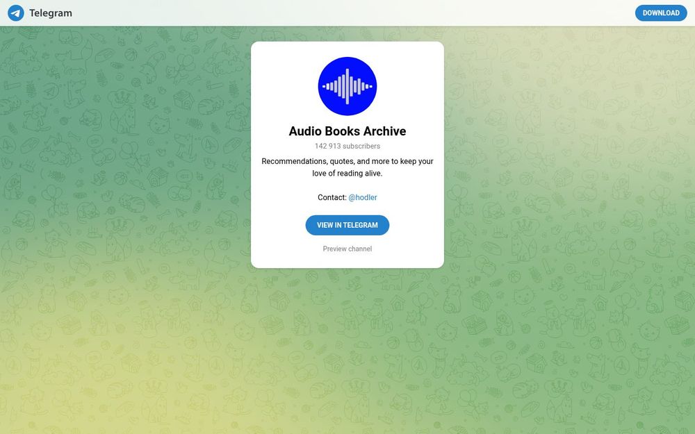 有声书档案是一个面向听书爱好者的 Telegram 频道,致力于收集、推荐并分享各类有声书资源与精彩语录。频道通过简洁的推送形式,将值得关注的书目、经典摘录和听书建议呈现给订阅者,方便在碎片时间内获取阅读灵感与发现新作品。频道同时提供管理员联系方式(@hodler),并支持在 Telegram 中直接预览与加入,增强了用户的可访问性和互动性。