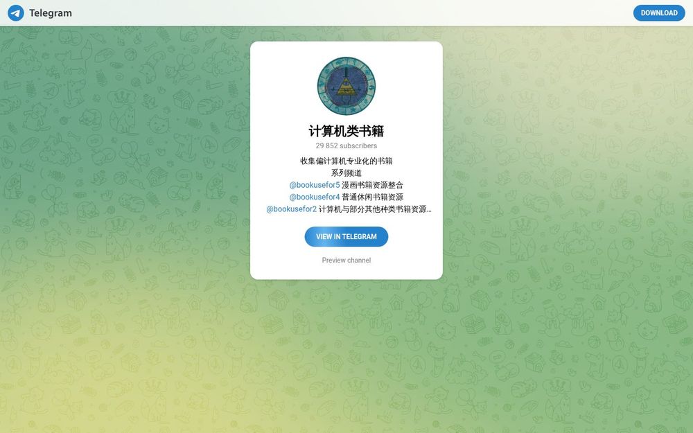 bookusefor3 是一个基于 Telegram 的书籍资源频道,定位为“计算机类书籍”资源的集中地。频道通过整理和分享电子书、出版社书单与众筹资源,为用户提供便捷的获取渠道。频道订阅人数接近三万,内容以偏专业化的计算机类书籍为主,涉及教材、参考书、经典丛书以及行业相关的进阶读物。