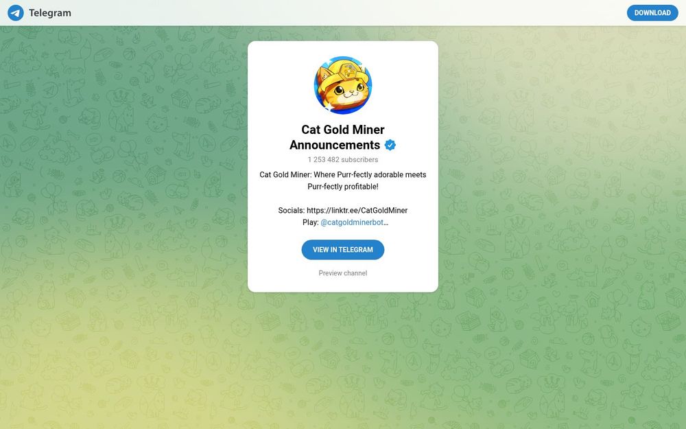 Cat Gold Miner 是在 Telegram 上运营的官方公告频道,旨在向关注者传递项目的最新动态与重要信息。频道自述口号为“Where Purr-fectly adorable meets Purr-fectly profitable!”,并拥有大量订阅者(约 1,253,482 名),通过多个官方机器人和社交渠道为用户提供互动、支持与合作通道。该频道偏重于公告类内容,是获取官方信息的首选渠道之一。