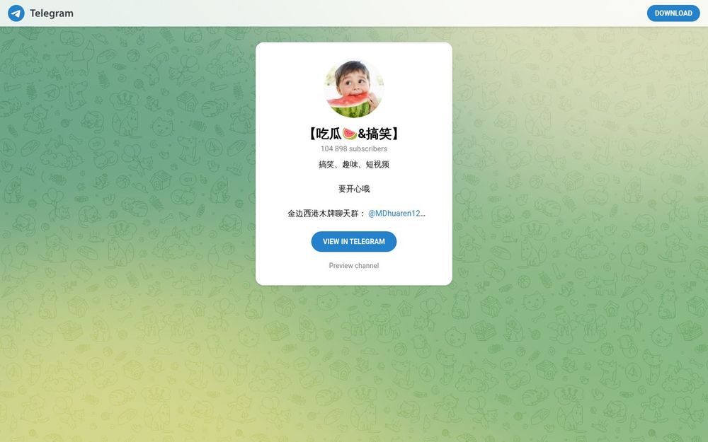 【吃瓜&搞笑】是一个面向中文受众的Telegram娱乐频道,主打轻松、有趣的短视频与段子内容,旨在为用户提供日常解压与社交话题讨论的空间。频道订阅人数众多,内容更新以短视频和图片为主,适合碎片化时间观看。页面同时提供频道预览、加入链接以及群组和广告位联系方式,便于用户参与互动或进行商业合作。