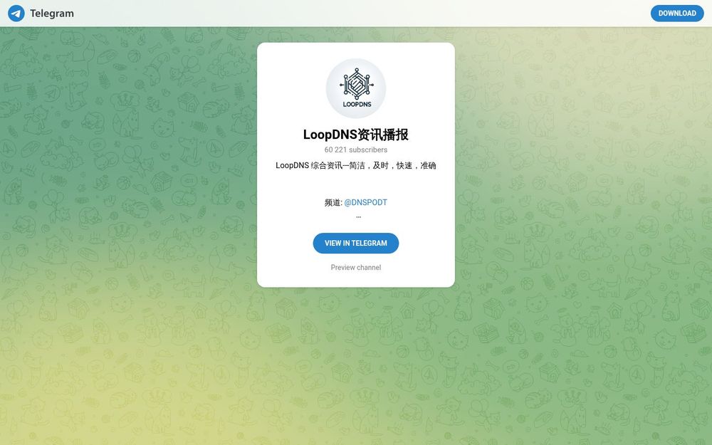 LoopDNS 资讯播报是以 Telegram 为载体的专业信息频道,账号为 @DNSPODT(链接:tg://resolve?domain=dnspodt)。频道宣称提供“综合资讯---简洁,及时,快速,准确”,面向关注 DNS 解析、网络基础设施、域名安全与相关政策动态的受众。当前频道拥有数万名订阅者,并配套设置了电报讨论组 @LoopDNS 以便读者交流与延伸讨论,同时公开了撤稿流程以提升信息管理的规范性。