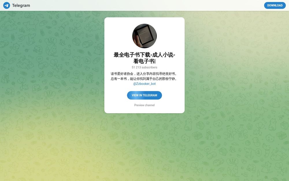 “最全电子书下载”是一个基于 Telegram 平台的读书资源分享频道,定位为电子书与成人小说的集合。频道通过定期推送、资源整理和机器人辅助检索,为读者提供便捷的书籍获取途径。无论是想追连载、寻找经典,还是想要快速下载离线阅读,这个频道都能作为一个便捷入口。
