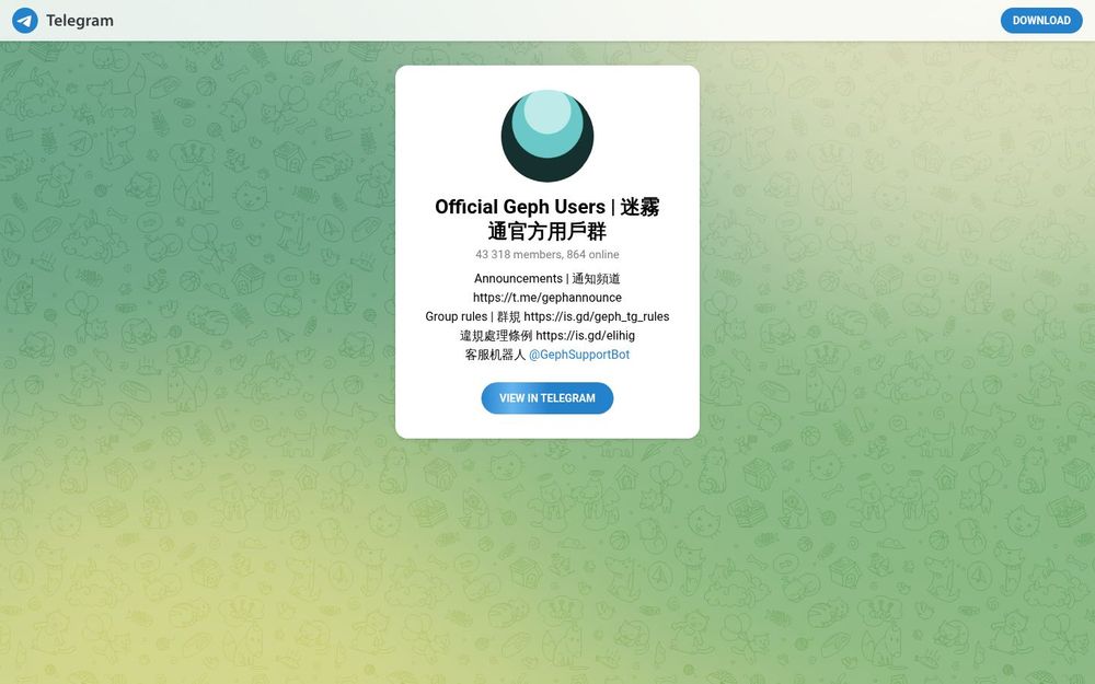 Official Geph Users(迷霧通官方用戶群)是围绕 Geph(迷霧通) 项目的官方 Telegram 社区,旨在为用户提供交流、支持与信息发布的集中通道。该群不仅汇聚产品使用者与开发者,还与官方公告频道(https://t.me/gephannounce)及客服机器人(@GephSupportBot)联动,便于第一时间获取版本更新、配置指南与紧急公告。