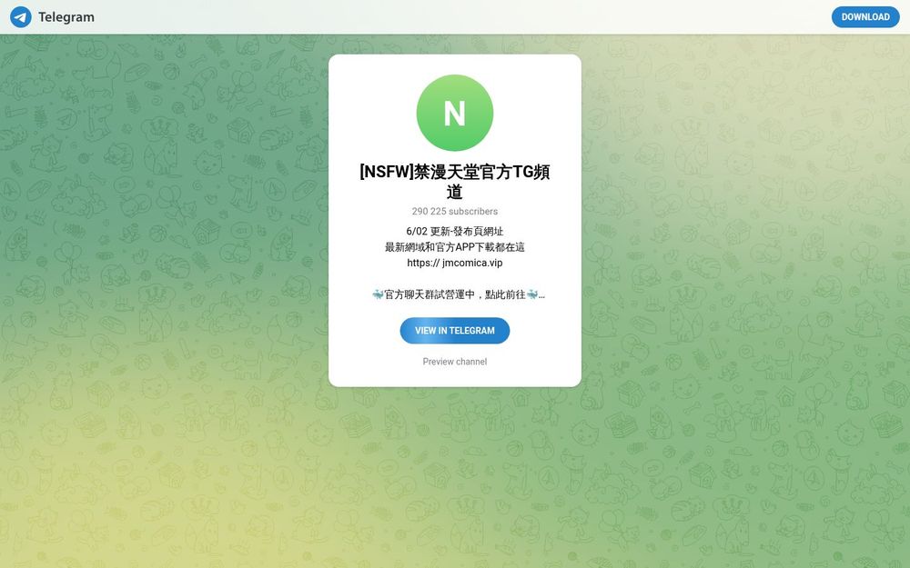 [NSFW]禁漫天堂官方TG頻道(简称“禁漫天堂”)是一个在Telegram上运营的成人向漫画资源发布与通知渠道。频道以及时推送最新域名、官方APP下载地址与发布页連結为主要服务,便于订阅用户在域名被封锁或变更时快速找到替代入口。该频道同时提供官方聊天群和Discord社群的链接,作为用户交流与账号问题处理的补充渠道。