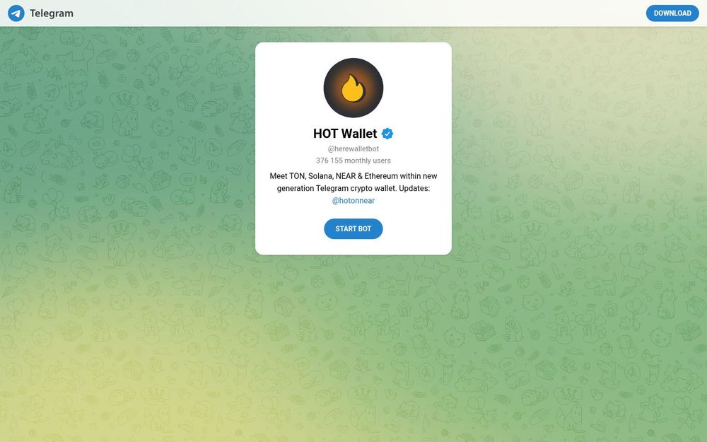 HOT Wallet 是一款以 Telegram 机器人形式运行的加密货币钱包(@herewalletbot),定位为“新一代 Telegram 加密钱包”。它主打在即时通讯环境内直接管理区块链资产,强调多链支持和便捷的启动体验。页面展示了较高的用户活跃度(约 376,155 月活)并提供专门的更新频道 @hotonnear,用于发布功能迭代和公告。
