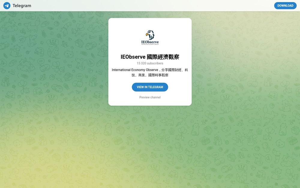 IEObserve(IEObserve 國際經濟觀察)是一個基於 Telegram 平台的資訊頻道,定位為國際財經與時事觀察的內容聚合與分析平台。頻道以中文為主,結合國際來源的即時新聞與專題解析,旨在為關注全球經濟、科技與商業變遷的讀者提供可靠、精簡且具洞見的資訊推送。頻道擁有超過 15,000 名訂閱者,內容包括快訊、深度文章、圖表和外部報導連結。