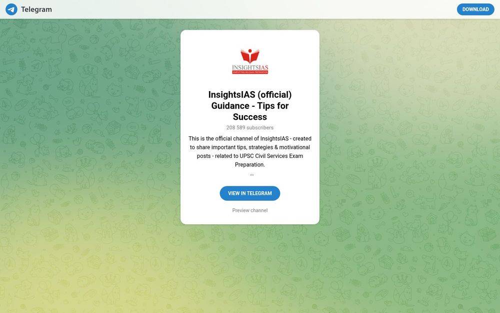 InsightsIAS(official)Guidance - Tips for Success 是 InsightsIAS 官方在 Telegram 上的备考频道,专注为 UPSC(印度公务员考试)考生提供实用、可操作的备考建议与学习资源。频道由官方团队维护,内容涵盖考试策略、时事要点、科目梳理、模考反馈与激励性文章,适合不同阶段的备考者查缺补漏与优化学习路径。