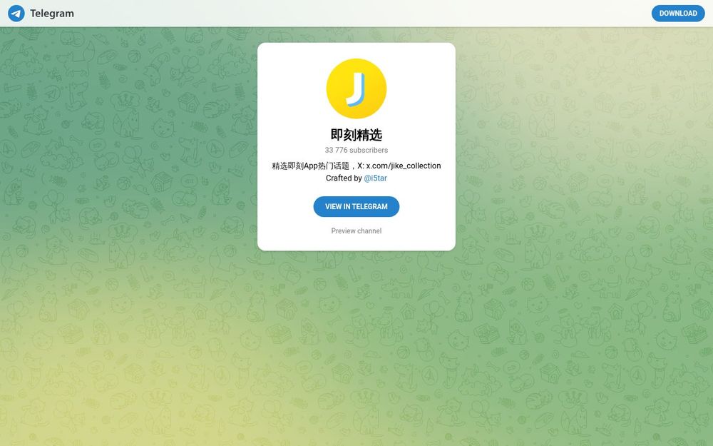 即刻精选 是在 Telegram 上为中文用户提供的一个内容聚合频道,主要从即刻(Jike)App 中挑选热门话题与高质量条目,经过人工筛选并以图文或链接形式在频道中发布。频道由用户 @i5tar 维护,目标是让无法或不常登陆即刻 App 的用户,也能通过 Telegram 快速获取精选讨论与趋势内容,并通过预览与外部链接方便地跳转与深度阅读。