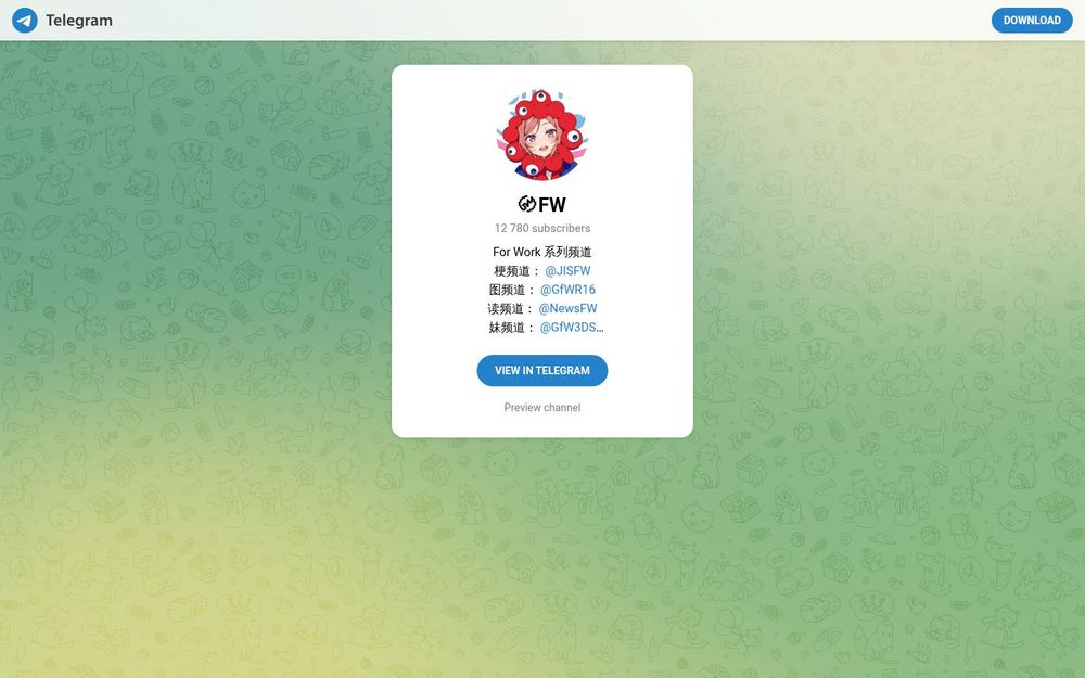〄FW(For Work 系列)是一个在 Telegram 平台上的系列频道入口,聚合了多个子频道与 Bot,面向喜欢梗图、图片分享、阅读推荐、妹子内容与 AI 相关科普或素材的受众。频道强调社群联动与多渠道分发,提供了预览与直接加入的链接,便于用户在 Telegram 中一键订阅与互动。