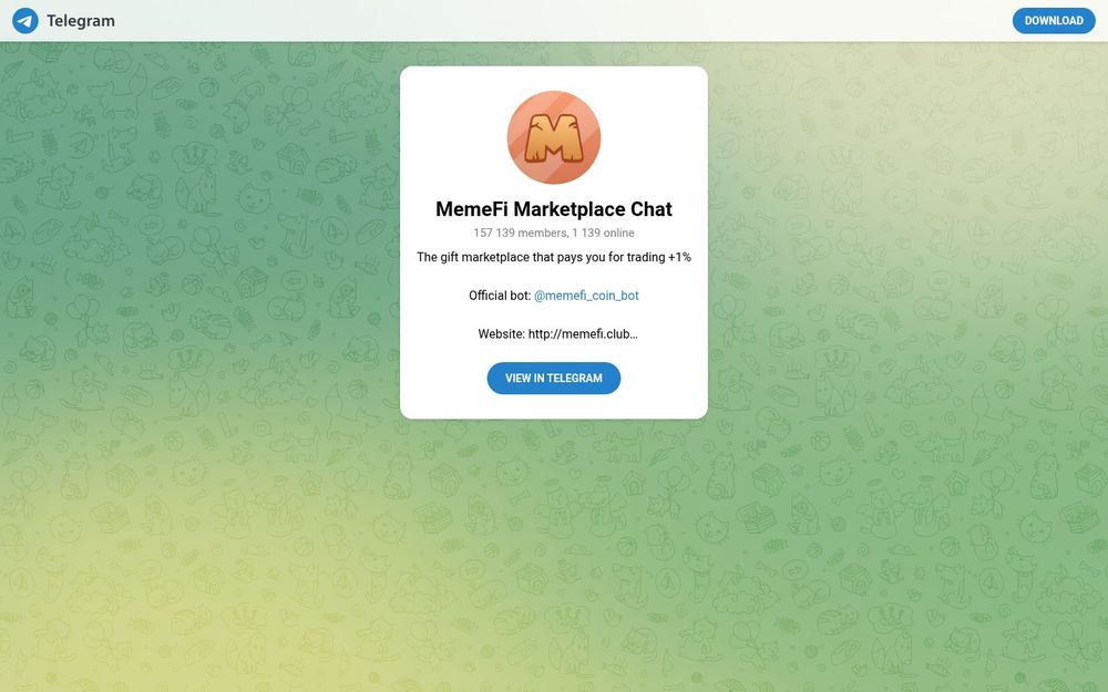 MemeFi Marketplace Chat 是一个以 Telegram 为载体的礼品与交易社群市场,聚集了大量用户并通过社群机制和机器人工具提供交易、支持与奖励。其核心卖点是“交易返利 +1%”,即在社区内进行交易时可获得额外收益,从而激励用户参与买卖和流动性贡献。该项目同时公开了官网(http://memefi.club)、官方机器人(@memefi_coin_bot)以及客服机器人(@memefi_ticket_bot),并维护一个官方频道(@memeficlub)用于公告与推广。