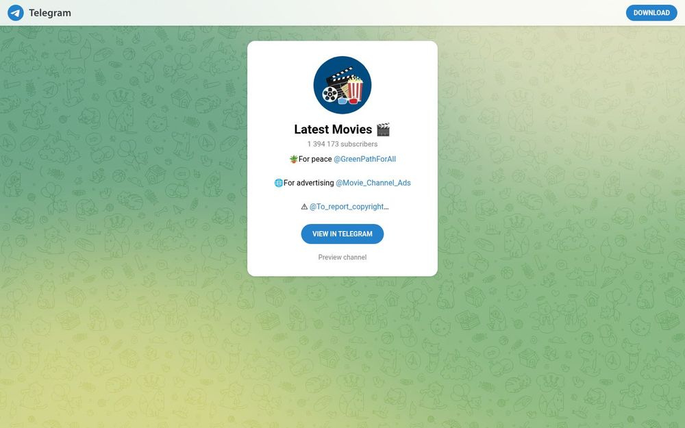 Latest Movies 🎬 是一个基于 Telegram 的电影资讯频道,主打“每日发现新电影”的内容分发。频道自述其内容来源于 维基百科(Wikipedia),并强调遵守版权相关规定,旨在为电影爱好者提供结构化、便捷的影片简介与基本资料。该频道订阅量庞大,拥有超过一百三十九万名订阅者,适合希望通过即时消息平台获取电影推荐与背景信息的用户。