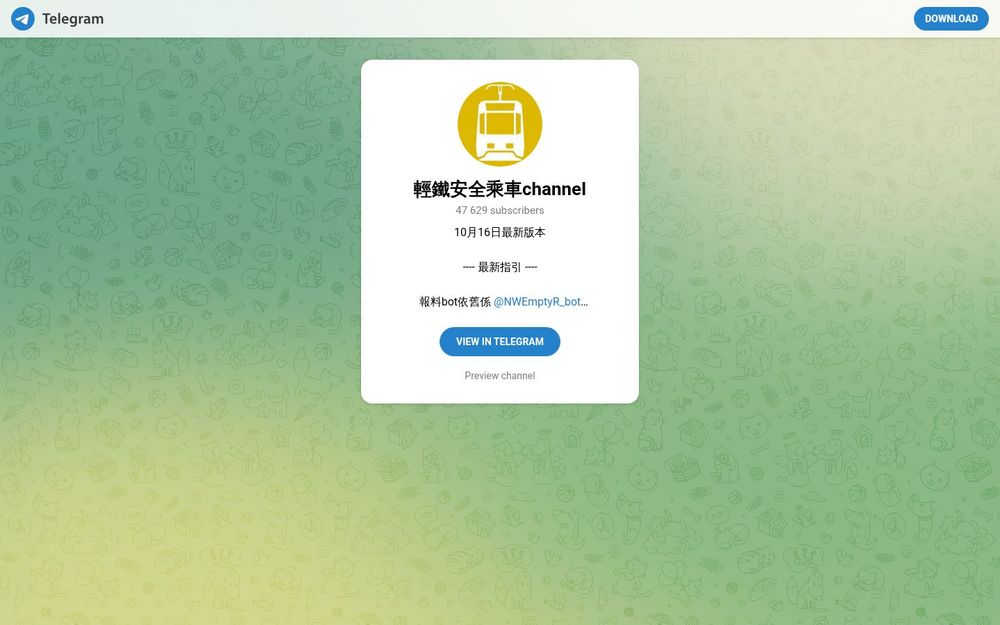 輕鐵安全乘車(NWemptyR)是一個基於 Telegram 的公共頻道與報料機器人組合,專注於收集、整理與發布有關輕鐵運行與乘車安全的即時資訊。頻道目前擁有約 47,629 名訂閱者,並於 10月16日 更新至最新版本。為了提高資訊處理效率與一致性,頻道設置了專門的報料 bot(@NWEmptyR_bot),並採用結構化的報料格式與自動化處理機制。