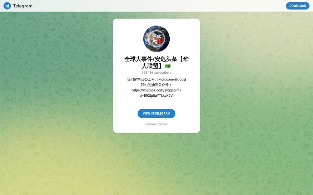 全球大事件/安危头条【华人联盟】是一个面向全球华人读者的Telegram频道,主要发布与华人相关的突发新闻、治安提示、诈骗曝光与事件追踪。频道以实用性和时效性为核心,兼顾线索收集与社区互助,适合关注海外工作、留学、旅游及移民安全信息的用户。频道同时通过抖音(TikTok)和油管(YouTube)等平台进行内容延展,形成多平台传播网络。