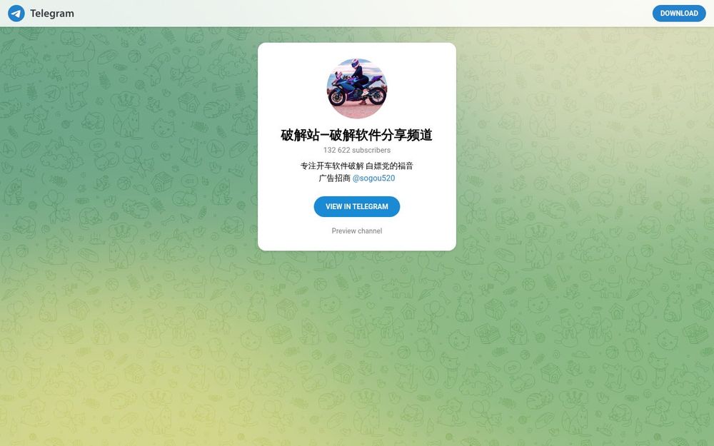 破解站—破解软件分享频道是一个面向中文用户的 Telegram 频道,主要以分享各类软件的破解版本、安装包、激活方法及相关使用教程为核心内容。频道简介自称“专注开车软件破解,白嫖党的福音”,并通过定期发布资源、预览与下载链接来维持活跃度。该频道拥有较大订阅人数(约132,622人),同时提供广告招商的联系方式,显示其既有内容传播也有商业合作属性。