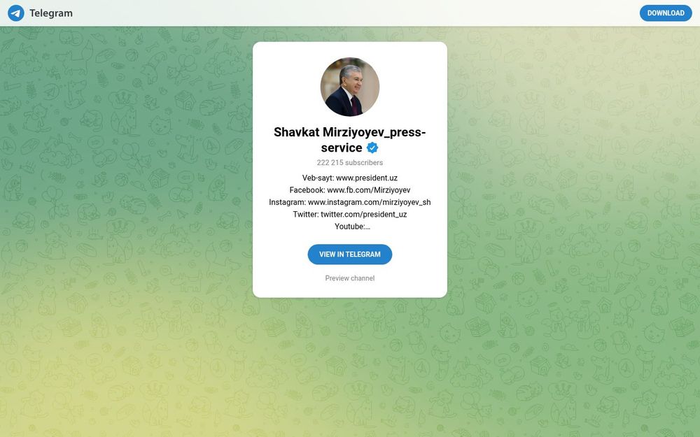 - 在 Telegram 中直接访问或预览频道(tg://resolve?domain=shmirziyoyev)以确认订阅。