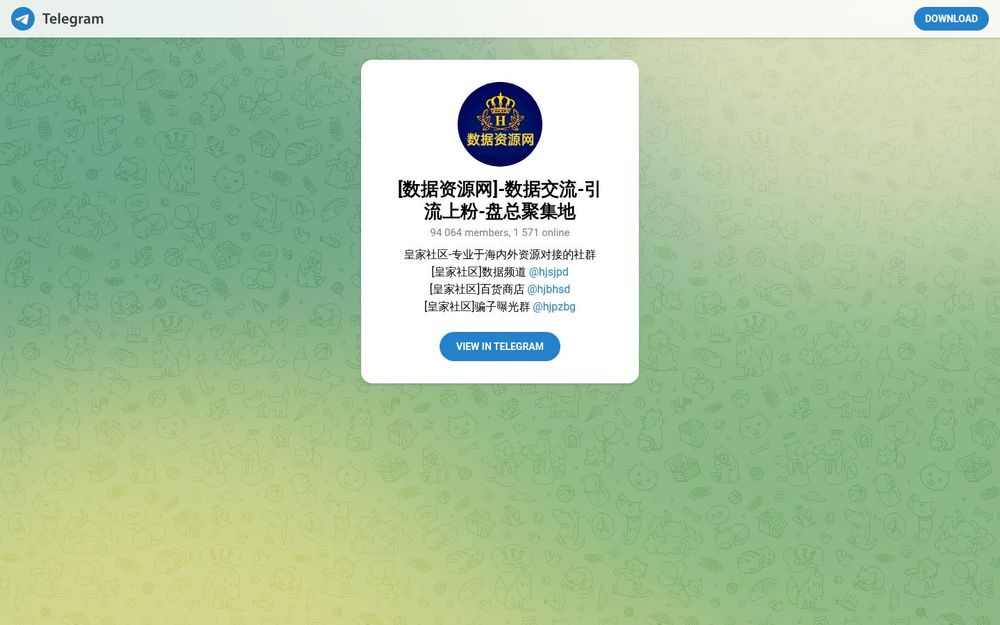 “数据资源网”是一个基于 Telegram 的社区频道,定位于数据交流、引流上粉与资源对接。频道由“皇家社区”运营,拥有大量会员(约94,064 人)和活跃在线用户(约1,571 人),通过频道发布资源信息、项目对接和交易广告,旨在为个人和团队提供海内外资源对接与流量解决方案。