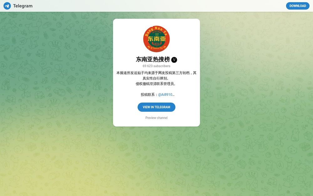 东南亚热搜榜(Telegram 频道,用户名 CGQZ02)是一个面向关注东南亚地区话题的聚合频道,致力于收集并转发来自网友投稿与第三方转档的热门内容。频道以快速传播为核心,包含图片、话题摘录与外部链接预览,聚集了大量对区域时事、娱乐、网络流行内容感兴趣的订阅者。频道明确声明内容多为第三方来源,提醒读者自行辨别真实性,并提供管理员联系方式以便处理侵权与撤稿。