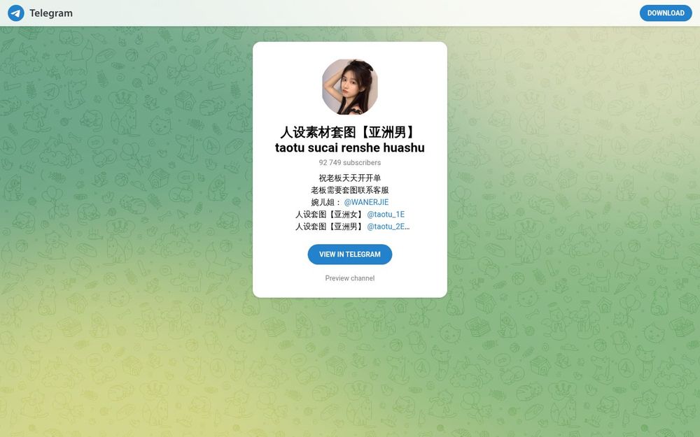 人设素材套图【亚洲男】是由 taotu 系列在 Telegram 上发布的主题素材频道,专注于提供以“亚洲男性”为主的人像套图资源。频道以套图打包的形式发布,可通过 Telegram 预览、加入与联系客服下单,适合需要人物形象参考、角色设定或视觉素材的设计师、内容创作者与市场运营人员。