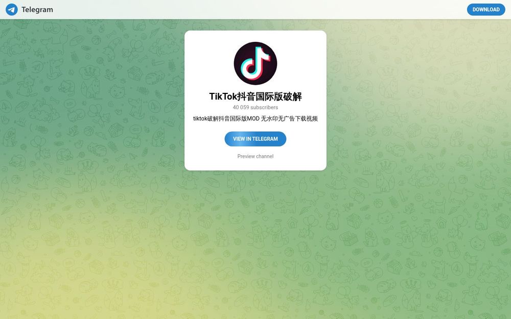 TikTok抖音国际版破解是一个以在 Telegram 上分发 TikTok 国际版破解应用为主的频道。该频道主要面向希望绕过官方限制、去除水印和广告的用户,提供修改后的 APK 安装包、下载链接以及使用说明。频道内容更新通常包括版本推送、功能演示截图和简短教程,旨在帮助用户更方便地下载和保存国外 TikTok 平台上的短视频内容。