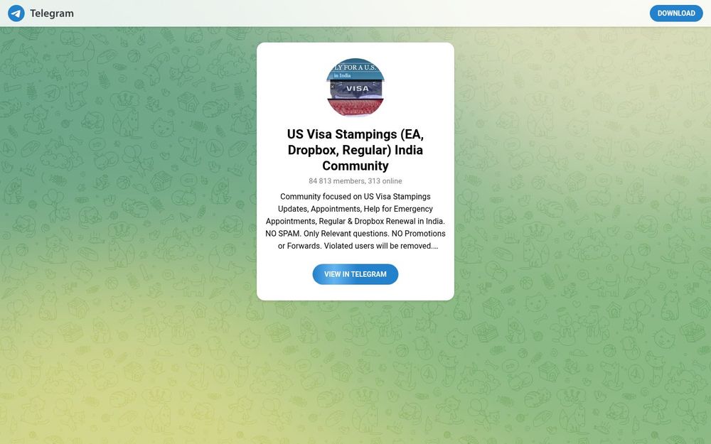 US Visa Stampings(EA, Dropbox, Regular)India Community 是一个基于 Telegram 的公共社区,旨在为在印度申请美国签证的用户提供实时信息与互助支持。该群由 RedBus2US.com 团队 管理,成员众多,信息更新频繁,专注于签证盖章相关的实际操作与经验分享。
