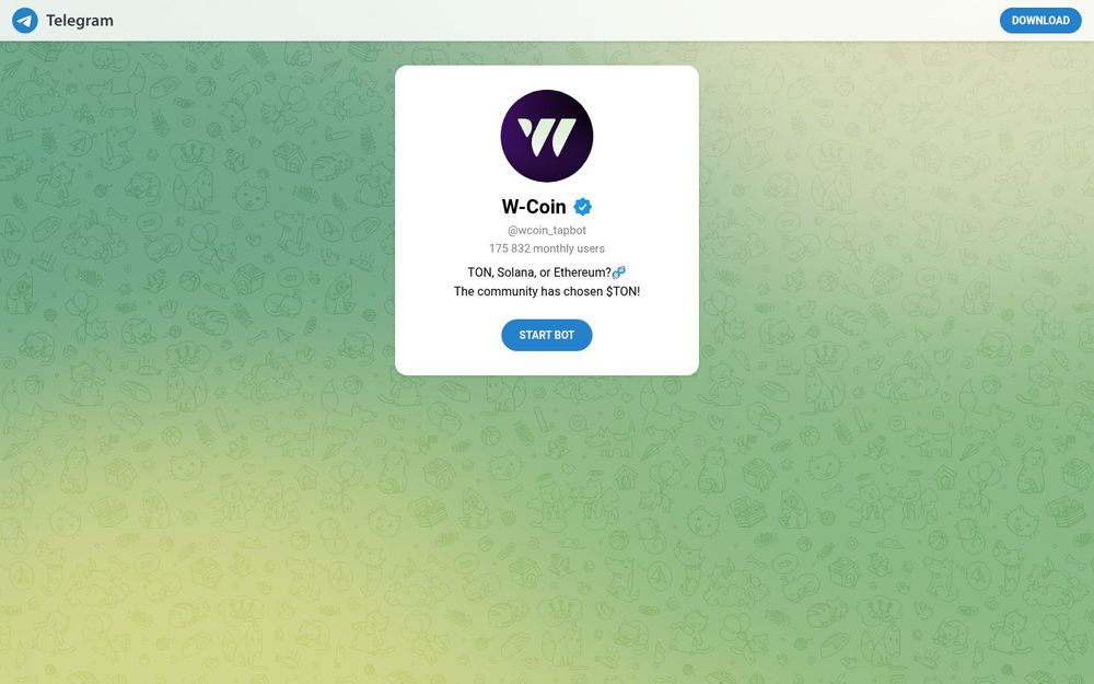 W-Coin 是一个基于 Telegram 平台的加密货币机器人(bot),通过 Telegram 链接可以即时启动并参与相关活动。该项目以社区驱动为核心,页面显示每月活跃用户约 175,832 人次,支持包括 TON、Solana、Ethereum 在内的多条公链,并且页面提示社区已选择以 $TON 为当前主要链。使用者无需额外安装复杂软件,只需在 Telegram 内打开机器人即可开始使用,便捷性是其一大特点。