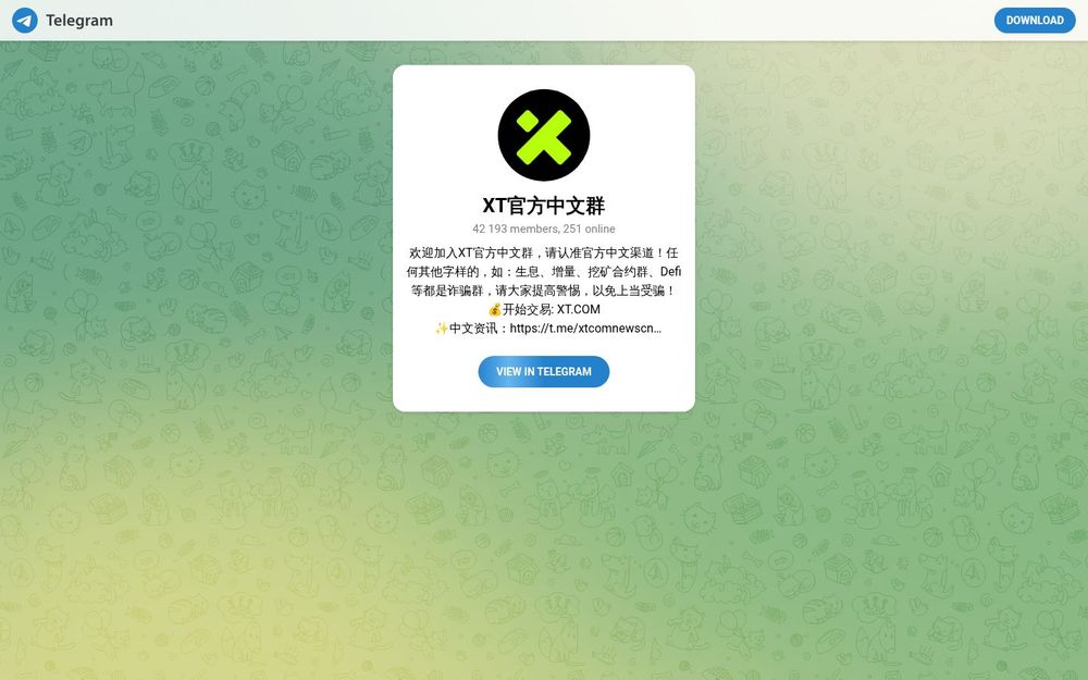 XT官方中文群(Telegram:XTsupport)是XT.COM面向中文用户建立的官方社群,旨在为中文社区提供即时公告、平台动态以及用户交流支持。当前群成员规模较大(约42,193名成员,实时在线人数会波动),群组同时链接官方中文资讯频道与资源聚合(如 xtcomnewscn 与 Linktree),方便用户获取软件下载与服务入口。