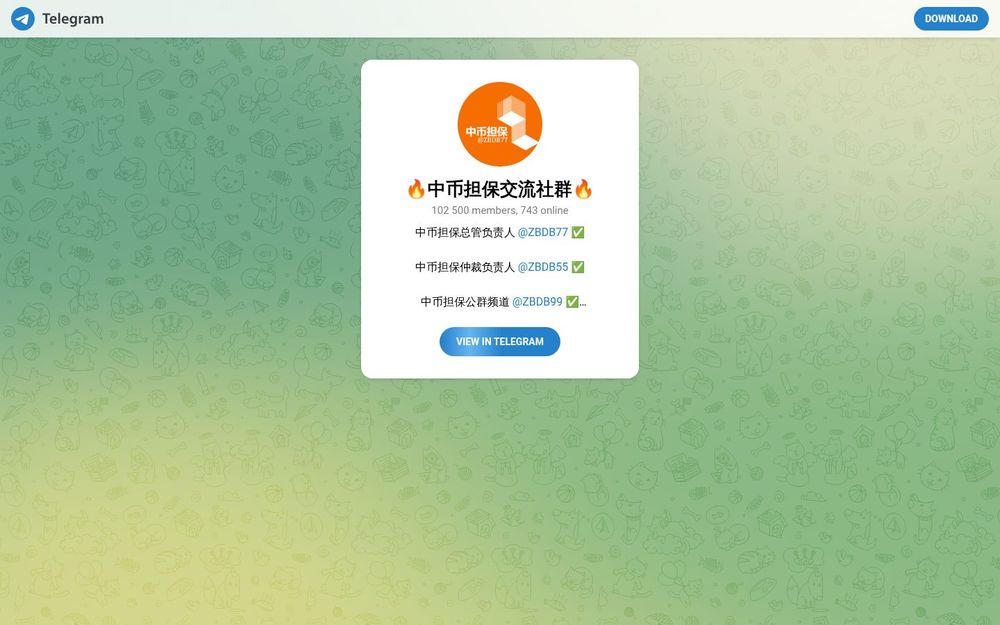中币担保交流社群(@ZBDB88)是一个基于 Telegram 的加密货币担保与交流平台,面向希望通过第三方托管降低交易风险的用户。社群由专职的担保总管和仲裁负责人团队负责管理,配备多个功能型机器人与相关公群频道,旨在为点对点交易双方提供更高的信任保障和纠纷处理机制。